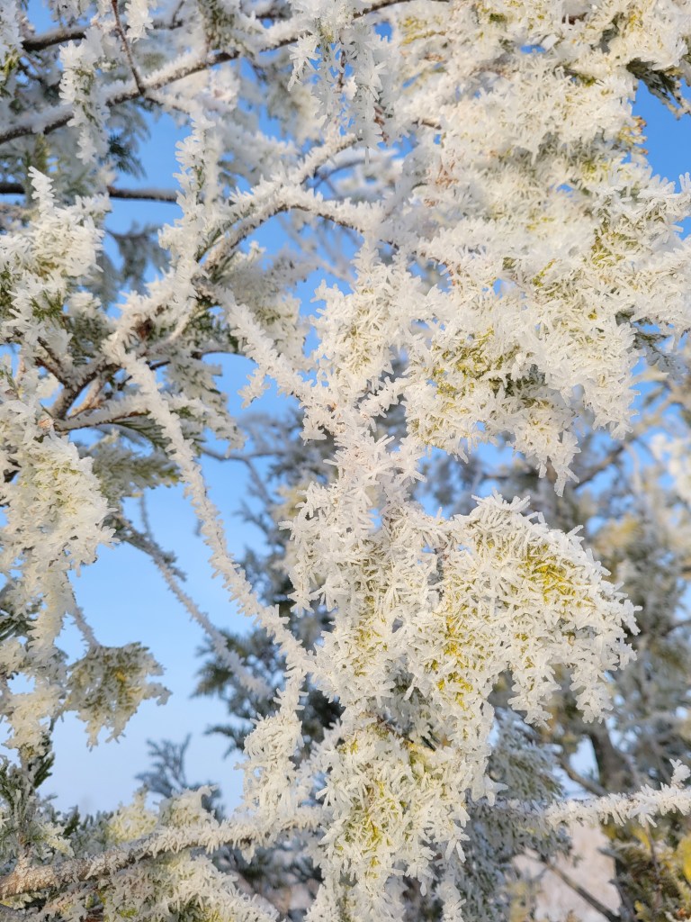 I took these photos one morning in November when I arrived at the office; it was one of the first snowfalls of the season. This is one of those times where I appreciated the beauty of the snow and noticed how it sat on the branches in different ways.