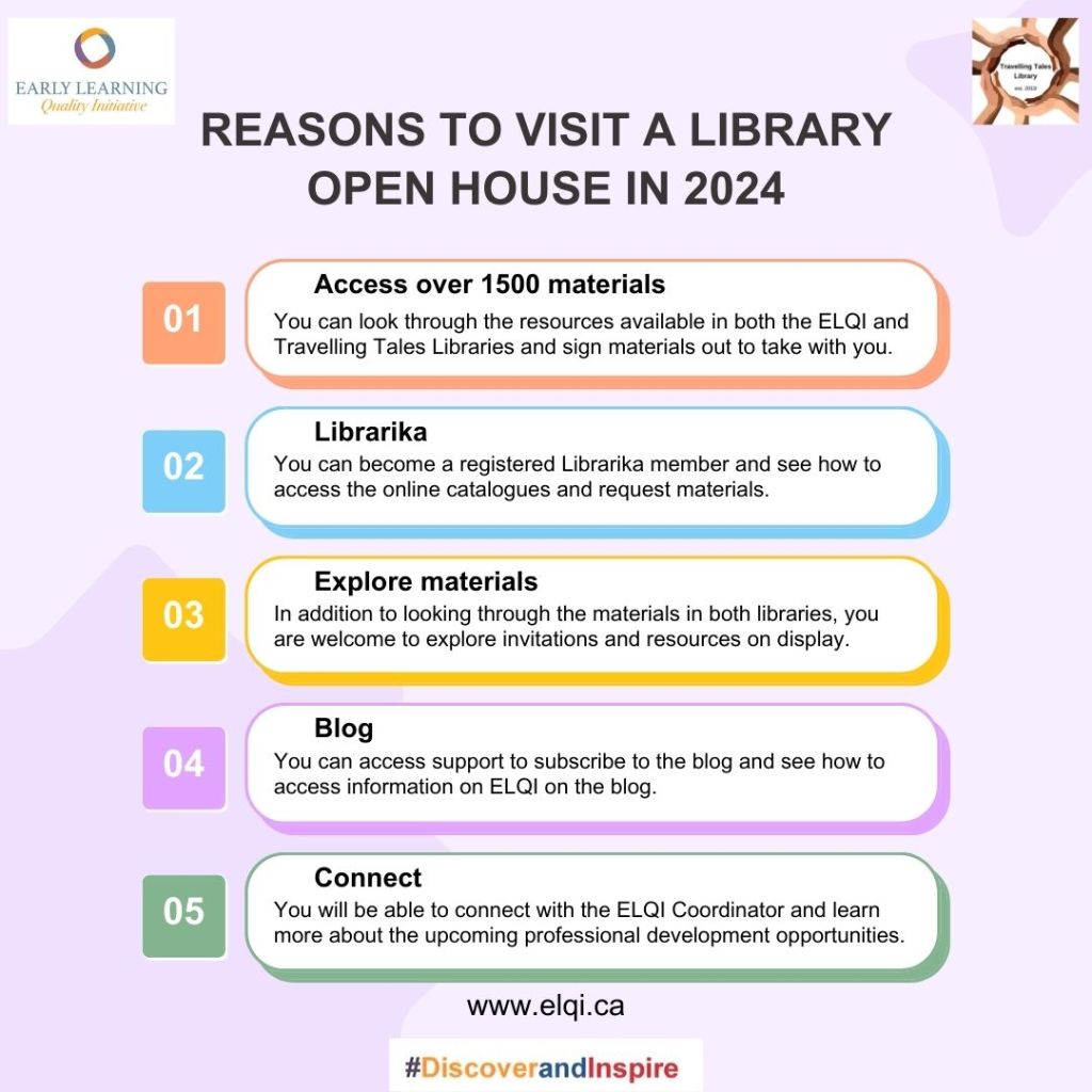 If you are wanting to visit the ELQI and Travelling Tales libraries, but unable to attend during one of the open house times, please know you can set up a time to visit.