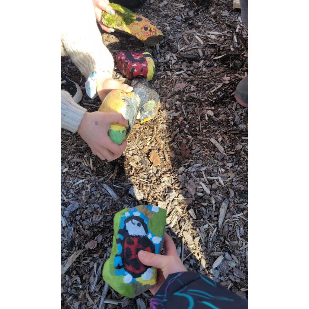 A group of children from the Compass Early Learning and Care Lindsay Program’s school age group walked to our Lindsay office to add some painted rocks to the rock snake! I loved hearing their stories about the process of their creations and the rocks they created to add to our rock snake. After a little visit and some great conversations, they picked some of the blank rocks to take back to the program with them to paint and come back another day to add more to the rock snake.