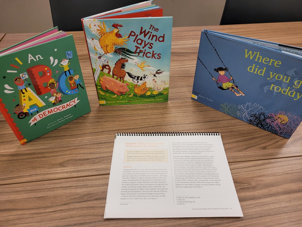 The focus of tonight’s Preschool Gathering will give educators the opportunity to reflect on the presence of How Does Learning Happen? in their program. This could include things such as: how/where is it seen/reflected in program/educator expectations, materials available, documentation, etc. while also looking at areas it might not be seen or reflected as much.