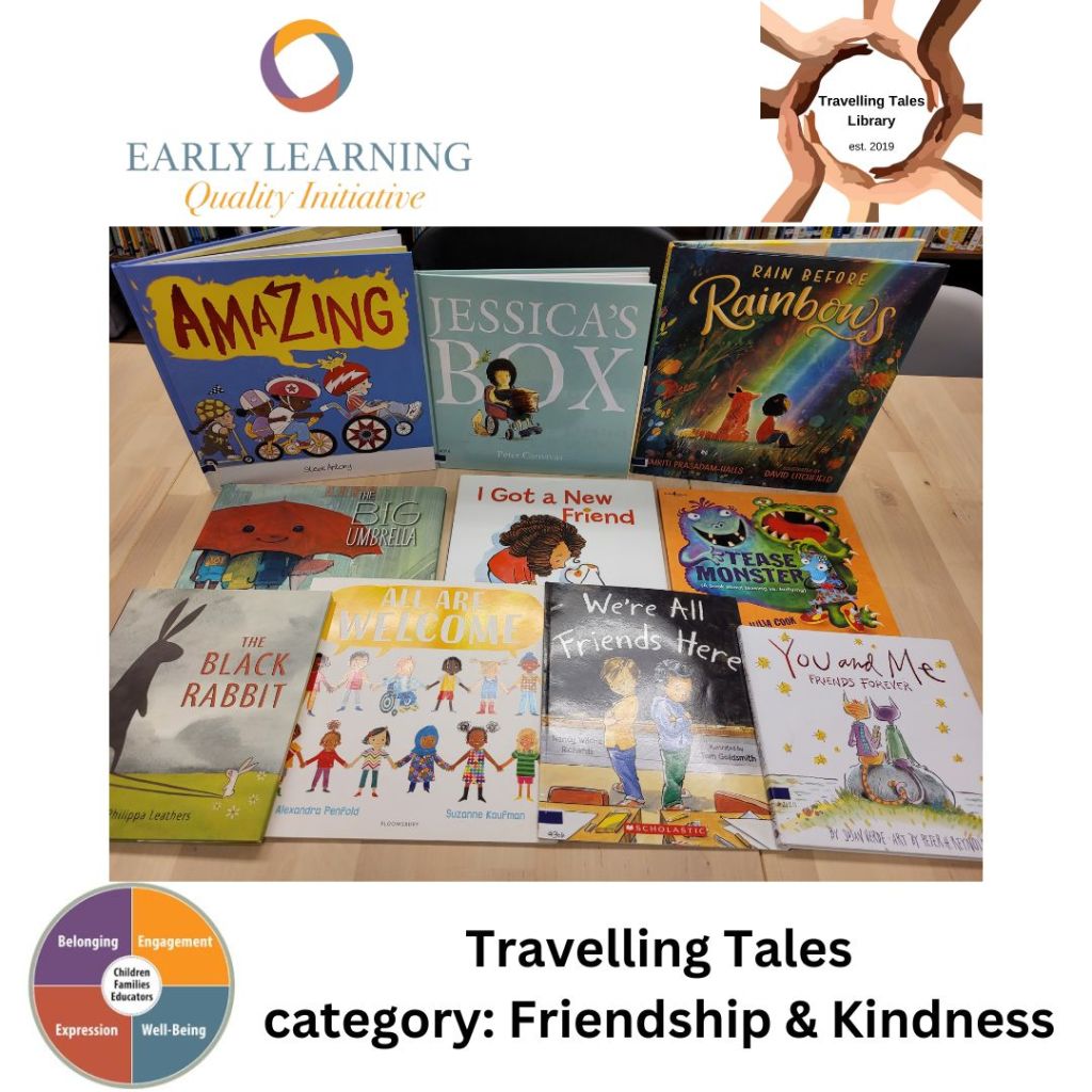 Our next Travelling Tales Book Study is on Wednesday, August 14th from 6:30-8:30 pm. During our time together we will look at books from the Friendship & Kindness category. We will discuss and reflect on how we support children in our programs to build friendships with one another, embrace kindness and even how to work through challenges and conflict with others. In addition to engaging in the discussions, there will be additional resources shared that can be taken back and used in your program. If you are interested in joining us at this professional learning opportunity, registration is open until Monday, August 12th (or sooner if spaces are filled) at noon and you can register here.