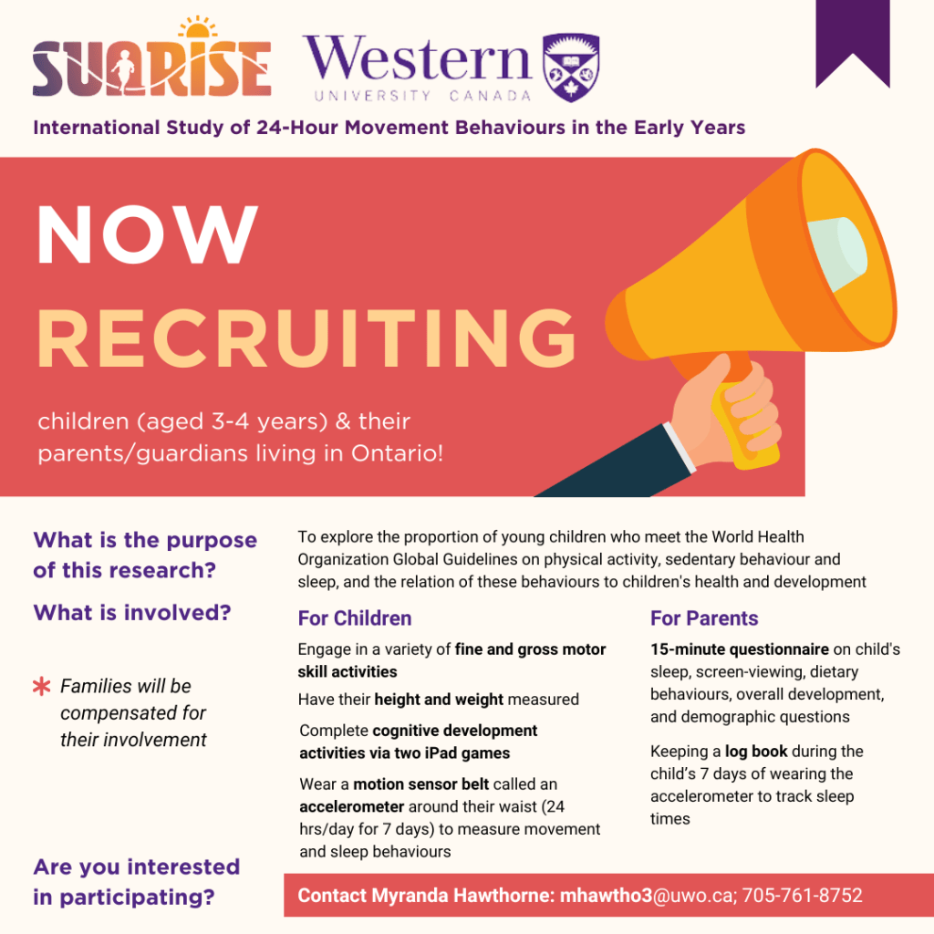 The researchers are looking for families throughout the City of Kawartha Lakes to participate in this study. If you are a family or know of any families that would be interested in participating, please reach out to Myranda Hawthorne at mhawtho3@uwo.ca or 705-761-8752. All the details are on the flyer and feel free to share.